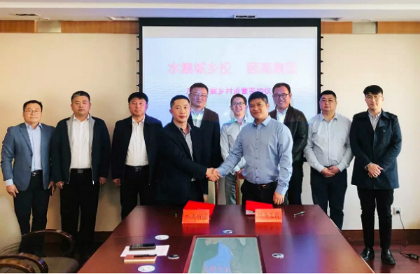 頤居美麗鄉(xiāng)村CEO葉峰(右)與水集城鄉(xiāng)投資建設(shè)有限公司總經(jīng)理趙京超(左)作為代表簽約