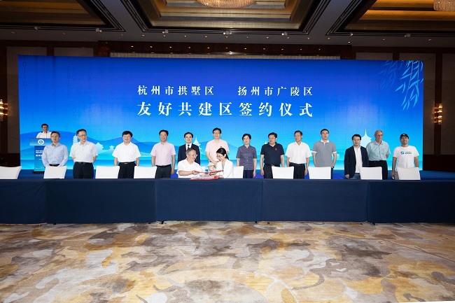 在各位領(lǐng)導(dǎo)及客商代表的共同見證下,杭州市拱墅區(qū)人民政府和揚(yáng)州市廣陵區(qū)人民政府簽署協(xié)議締結(jié)友好城區(qū)。隨后,10個(gè)優(yōu)質(zhì)項(xiàng)目啟動(dòng)簽約儀式,億茂科技和廣陵新城就頤高新零售產(chǎn)業(yè)基地二期擴(kuò)容項(xiàng)目完成現(xiàn)場(chǎng)簽約。