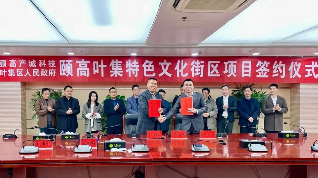 頤高集團(tuán)副總裁、頤高產(chǎn)城科技總裁黃濤與葉集區(qū)委常委、常務(wù)副區(qū)長(zhǎng)秦富好簽署合作協(xié)議