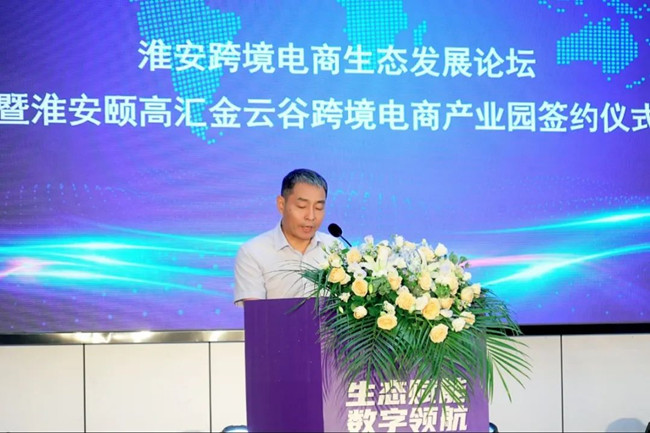 淮安市政府秘書長(zhǎng)、淮安經(jīng)濟(jì)技術(shù)開發(fā)區(qū)管委會(huì)主任劉愛國(guó)為本次活動(dòng)作開幕致辭。他首先代表淮安經(jīng)濟(jì)技術(shù)開發(fā)區(qū)對(duì)到場(chǎng)的嘉賓表示熱烈歡迎及衷心的感謝!劉主任表示:淮安跨境電商正從產(chǎn)業(yè)鏈集聚向生態(tài)鏈集聚、再到價(jià)值鏈集聚加速轉(zhuǎn)變。今天淮安頤高匯金云谷跨境電商產(chǎn)業(yè)園項(xiàng)目的落地簽約,就是我們打造淮安跨境電商產(chǎn)業(yè)生態(tài)的又一實(shí)踐。這里,將成為助推商貿(mào)企業(yè)“逐浪出海”的最優(yōu)平臺(tái),為企業(yè)逐浪上云、跨境出海增添強(qiáng)勁動(dòng)力。