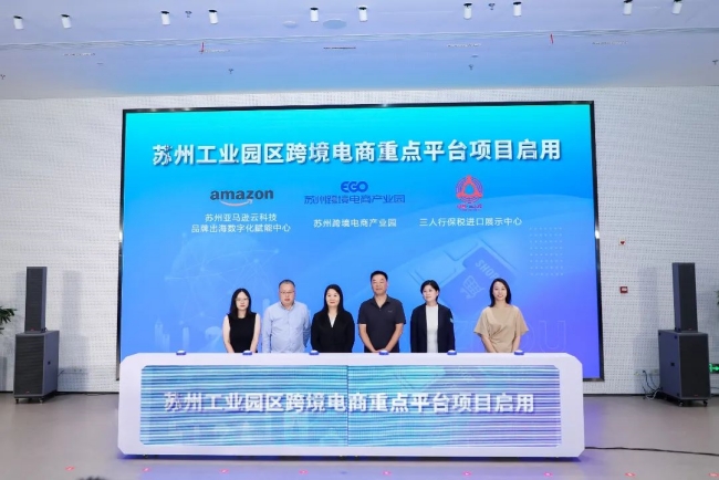 會(huì)上,EGO蘇州跨境電商產(chǎn)業(yè)園作為園區(qū)跨境電商重點(diǎn)平臺(tái)項(xiàng)目,與蘇州亞馬遜云科技品牌出海數(shù)字化賦能中心、三人行保稅進(jìn)口展示中心在大會(huì)上共同進(jìn)行啟用儀式。渡客出海、芯想事成等企業(yè)共同完成簽約儀式,達(dá)成園區(qū)跨境電商產(chǎn)業(yè)招商項(xiàng)目合作。
