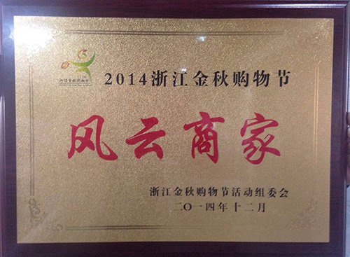 2014“浙江金秋購物節(jié)”共開展200多場展會和促銷活動,實現(xiàn)省市縣(區(qū))全覆蓋,輻射全國,共有上千余家商業(yè)企業(yè)參與。頤高集團積極響應此次活動號召,策劃并組織實施了多場相關活動。并在購物節(jié)中榮獲“風云商家”稱號。