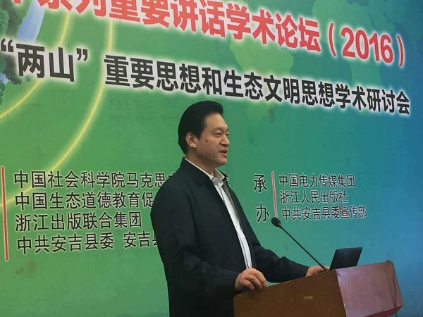 為深入學(xué)習(xí)貫徹黨的十八屆五中全會(huì)提出的“五大發(fā)展理念”,系統(tǒng)研究習(xí)近平總書(shū)記“綠水青山就是金山銀山”重要思想和生態(tài)文明思想,加快推動(dòng)美麗中國(guó)建設(shè),由中國(guó)社會(huì)科學(xué)院馬克思主義研究院、浙江出版聯(lián)合集團(tuán)、中國(guó)電力傳媒集團(tuán)和安吉縣委縣政府聯(lián)合主辦的“習(xí)近平系列重要講話學(xué)術(shù)論壇(2016)——習(xí)近平“兩山”重要思想暨生態(tài)文明思想學(xué)術(shù)研討會(huì)于2016年5月19日在安吉舉行,頤高集團(tuán)總裁助理孫家信應(yīng)邀參加了本次學(xué)術(shù)研討會(huì)。