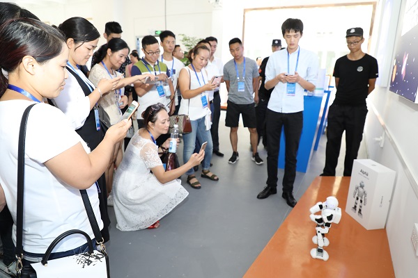 創(chuàng)業(yè)集市上創(chuàng)業(yè)者展示智能機(jī)器人