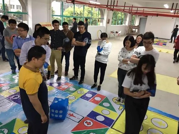 如果說滾鐵環(huán)瞬間點(diǎn)燃了選手們的參與熱情,那么真人飛行棋的亮相,可是讓選手們傻了眼?!巴?!這個(gè)飛行棋也太大了吧!滿滿都是兒時(shí)的回憶!”比賽現(xiàn)場,一陣歡聲笑語。